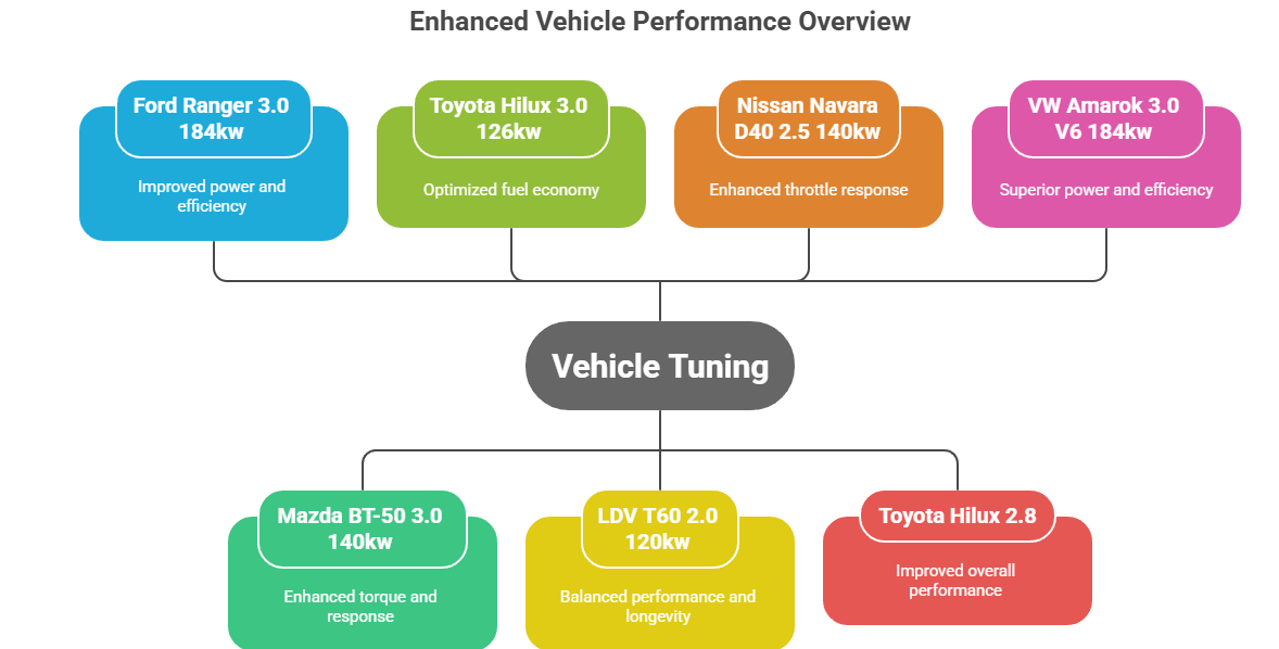 Our Brisbane team has enhanced a variety of diesel vehicles, ensuring every client leaves with a powerful, safe, and efficient vehicle. Recent tuning projects include: